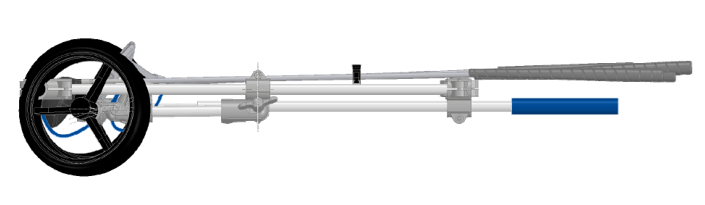 auch an schrägen Lagen. Durch die robuste Konstruktion eignet sich Tigrillo für jedes Gelände. Trigrillo kann auf den zwei leicht laufenden Rädern geschoben und gezogen werden, was bequemes Gehen erlaubt und einseitige Belastungen vermeidet.